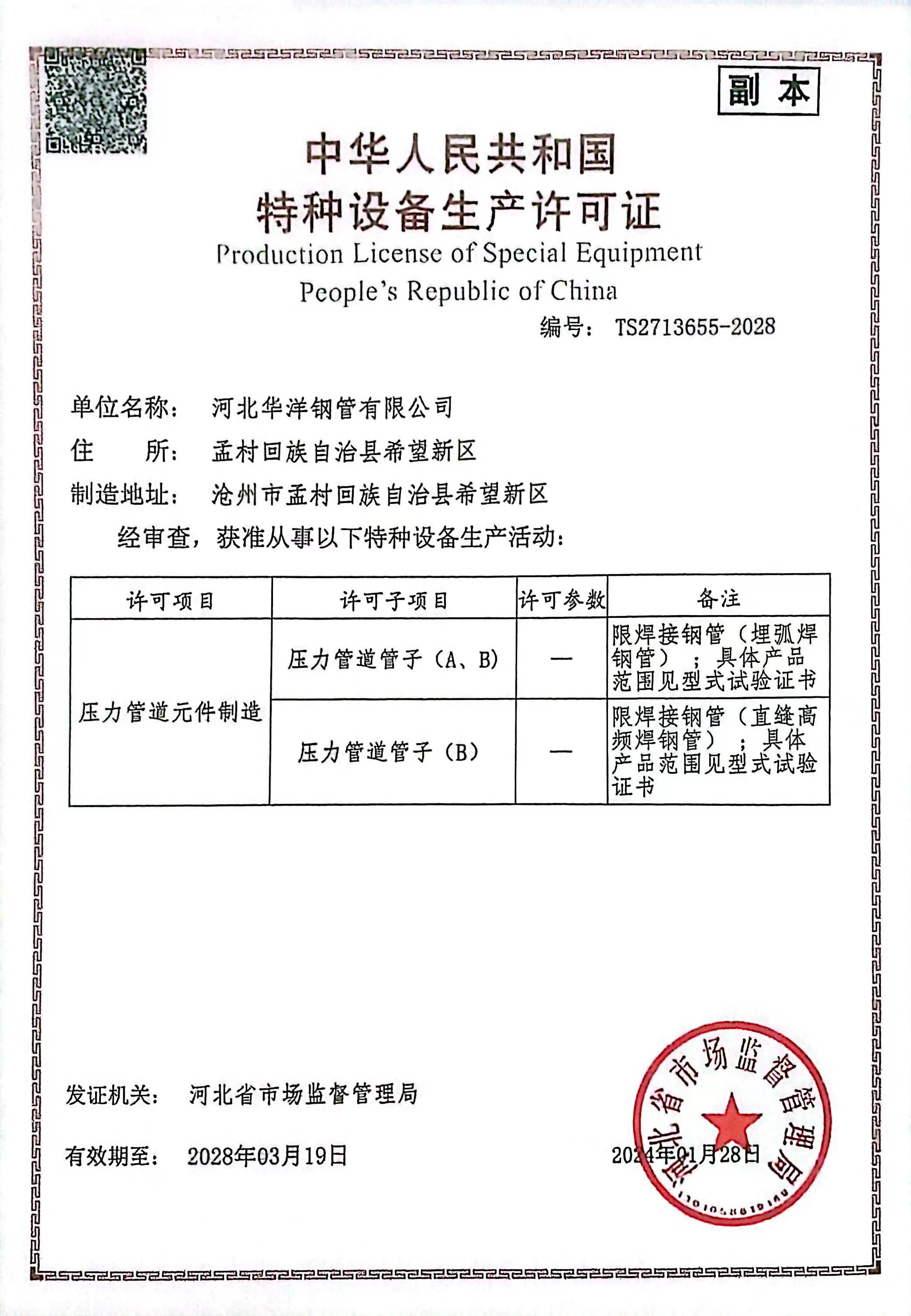 公司現(xiàn)有17條新型的自動化鋼管生產(chǎn)線,包括Φ73-660.4高頻直縫焊鋼管生產(chǎn)線14條、Φ406.4-Φ1422.4直縫雙面埋弧焊鋼管生產(chǎn)線3條,并配備有一條防腐生產(chǎn)線,可進行3PE、2PE、FBE、2PP、3PP防腐處理,同時還可提供鋼管深加工服務(wù)。公司擁有先進的理化實驗室,可承擔(dān)鋼管的各項物理及化學(xué)檢測與試驗。公司先后取得了ISO9001質(zhì)量管理體系認(rèn)證、ISO14001環(huán)境管理體系認(rèn)證、ISO45001職業(yè)健康安全管理體系認(rèn)證、特種設(shè)備制造許可證、API5L和API2B認(rèn)證證書、歐盟CE認(rèn)證、俄羅斯GOST認(rèn)證、中海油入網(wǎng)證、安全生產(chǎn)標(biāo)準(zhǔn)化二級企業(yè)等標(biāo)準(zhǔn)質(zhì)量體系認(rèn)證。